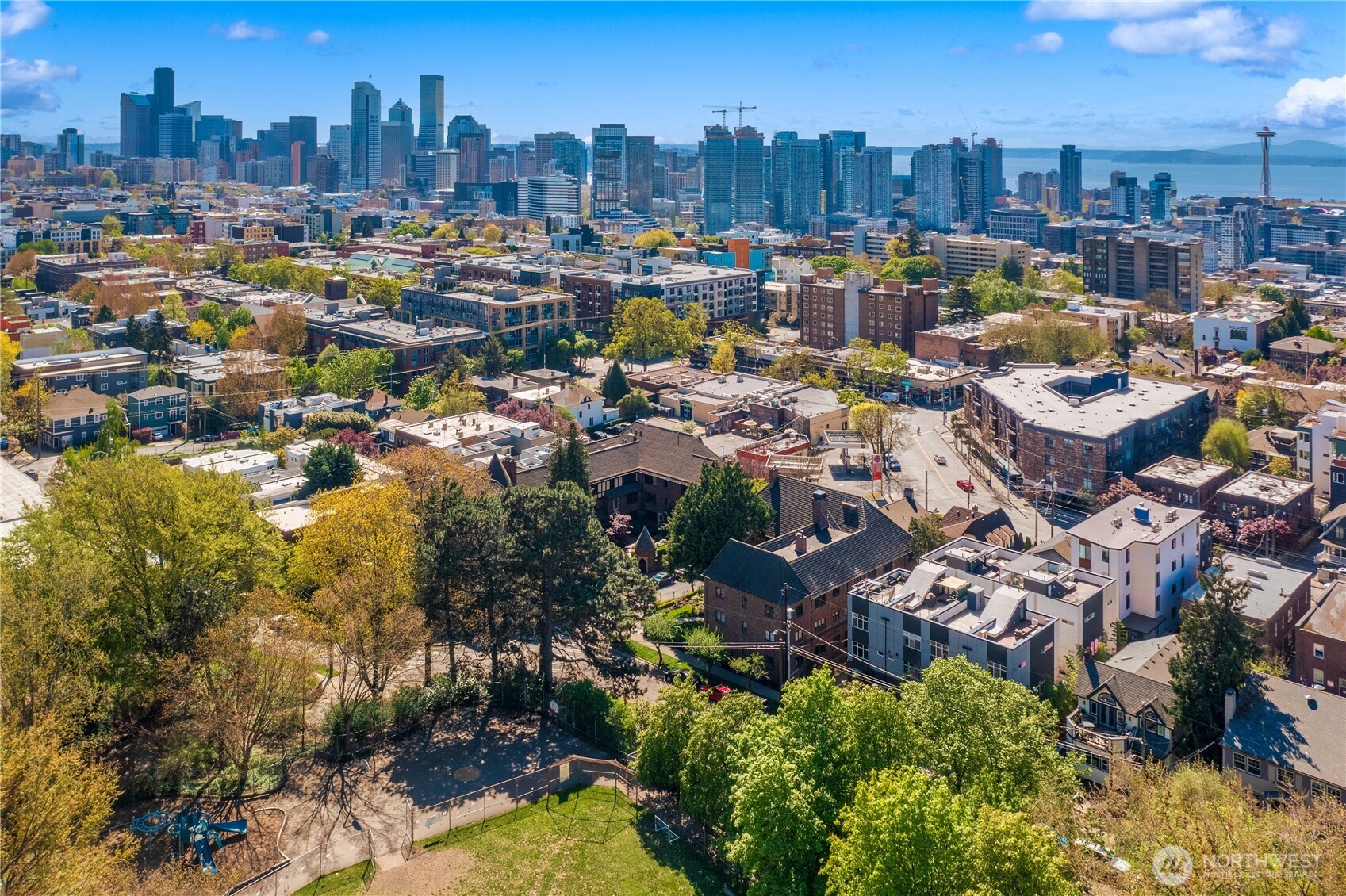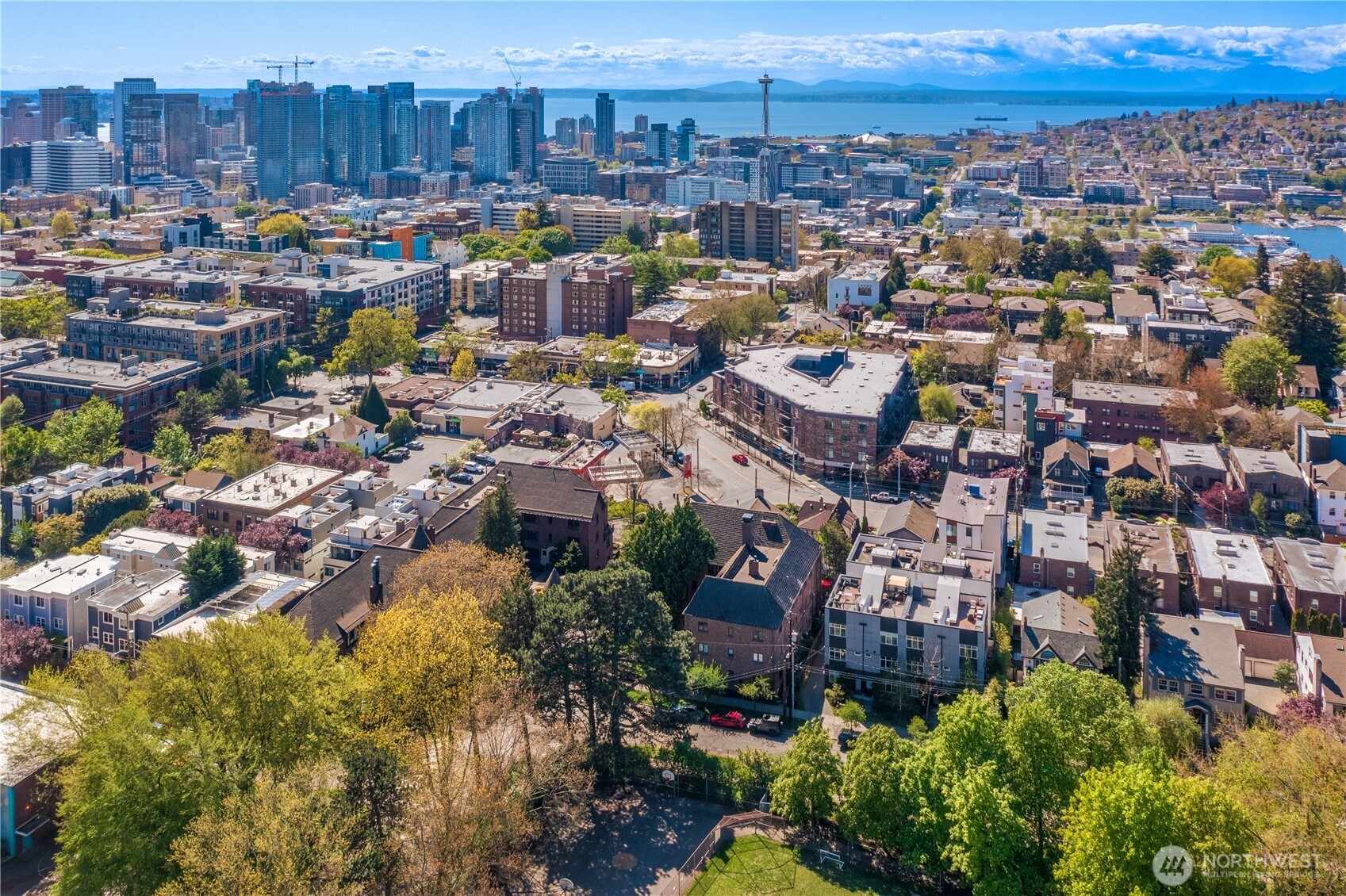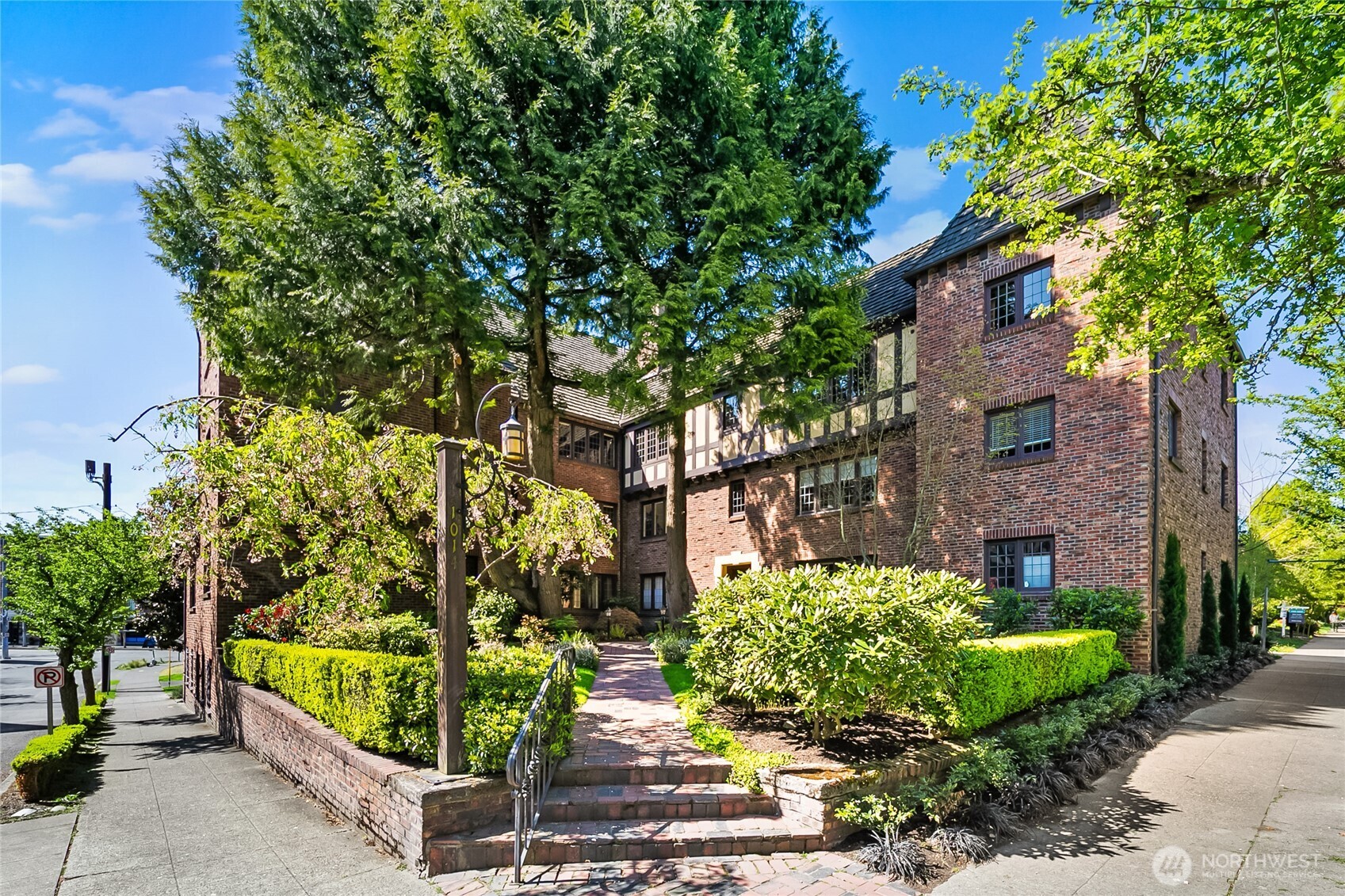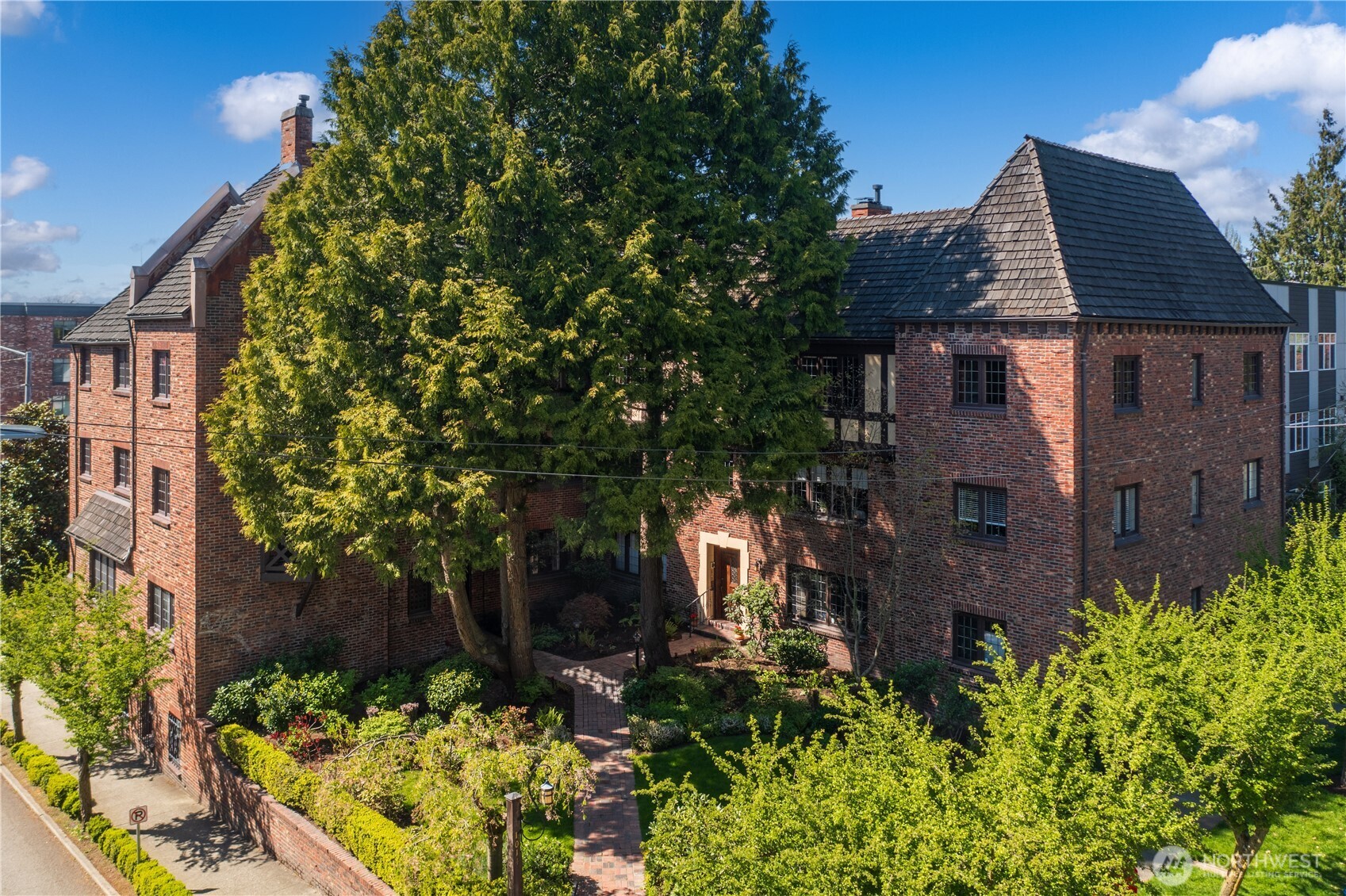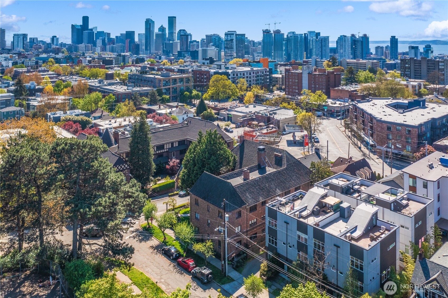 This top floor end unit at the treasured 1014 E. Roy Condominiums by Frederick Anhalt will delight! The home has no shared walls, and features an updated kitchen and bathroom that introduce modernity while honoring the original architecture. Curved archways throughout, including a custom door that separates the living and sleeping areas, continue the romantic flourishes of the exterior design. Thoughtful improvements include restored windows and retractable screens in operable windows. Convenient Capitol Hill location w/ proximity to peaceful Volunteer Park and the vibrant energy of Broadway. Dedicated washer/dryer just outside the kitchen door. Parking is available to rent across the street at the Anhalt-designed 1005 E. Roy Apartments.