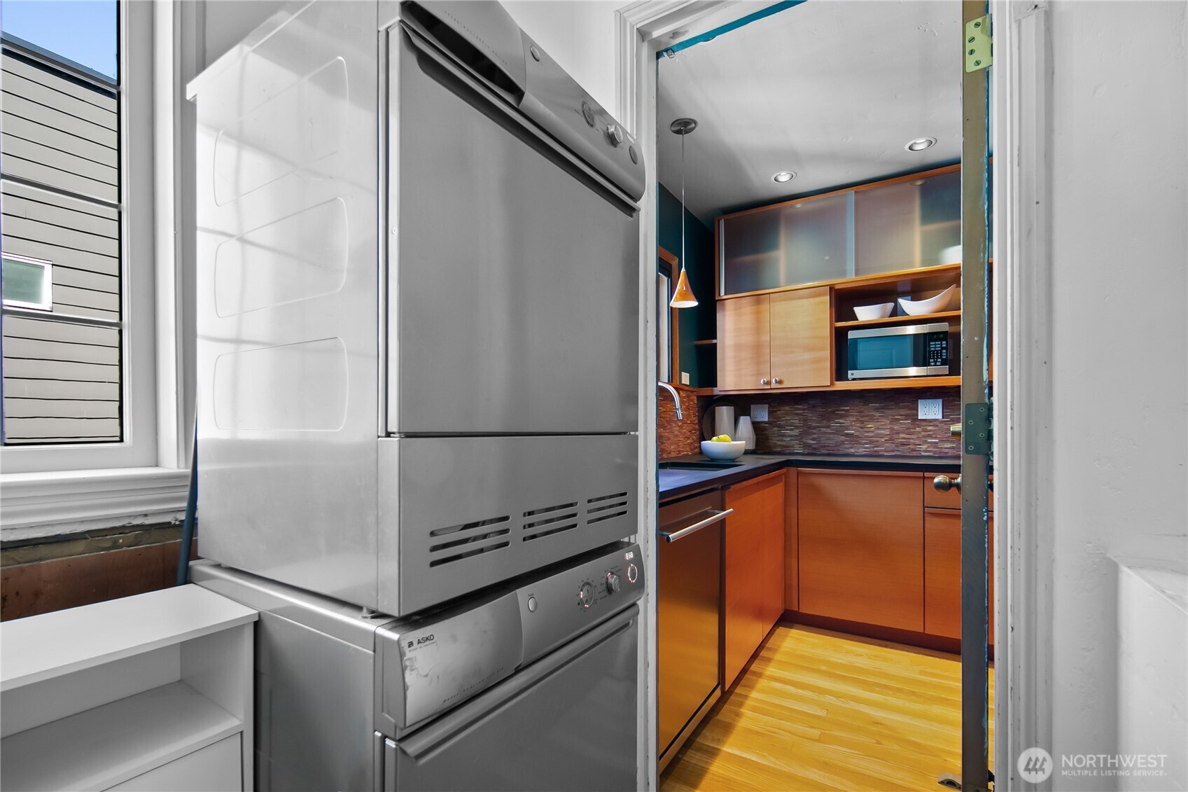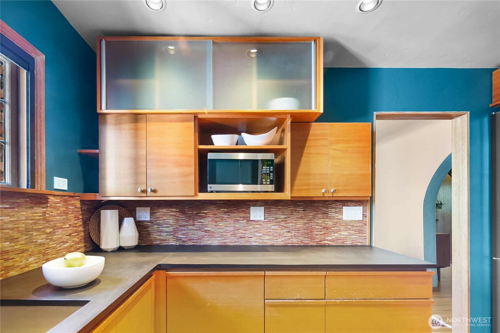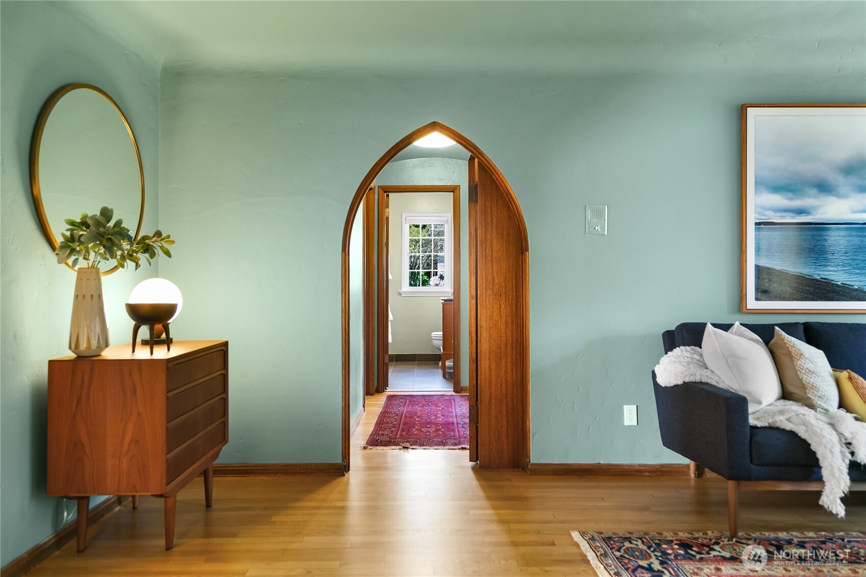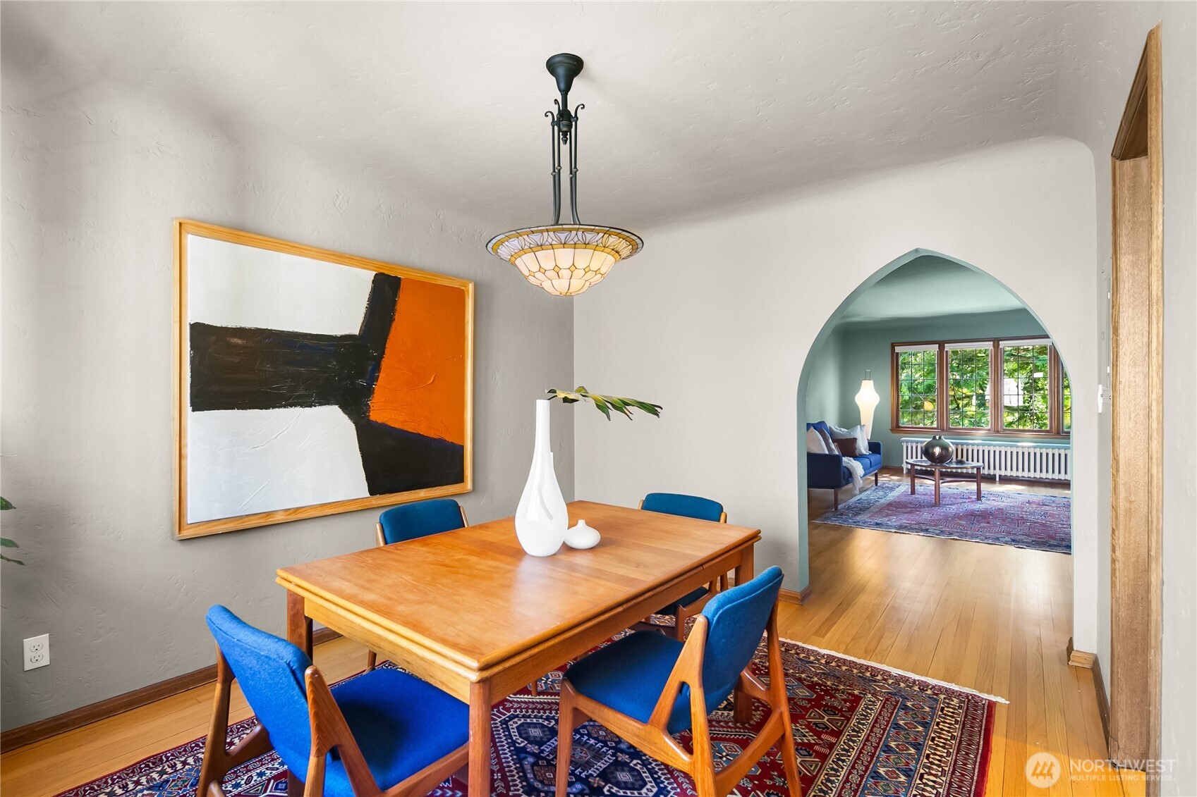 This top floor end unit at the treasured 1014 E. Roy Condominiums by Frederick Anhalt will delight! The home has no shared walls, and features an updated kitchen and bathroom that introduce modernity while honoring the original architecture. Curved archways throughout, including a custom door that separates the living and sleeping areas, continue the romantic flourishes of the exterior design. Thoughtful improvements include restored windows and retractable screens in operable windows. Convenient Capitol Hill location w/ proximity to peaceful Volunteer Park and the vibrant energy of Broadway. Dedicated washer/dryer just outside the kitchen door. Parking is available to rent across the street at the Anhalt-designed 1005 E. Roy Apartments.