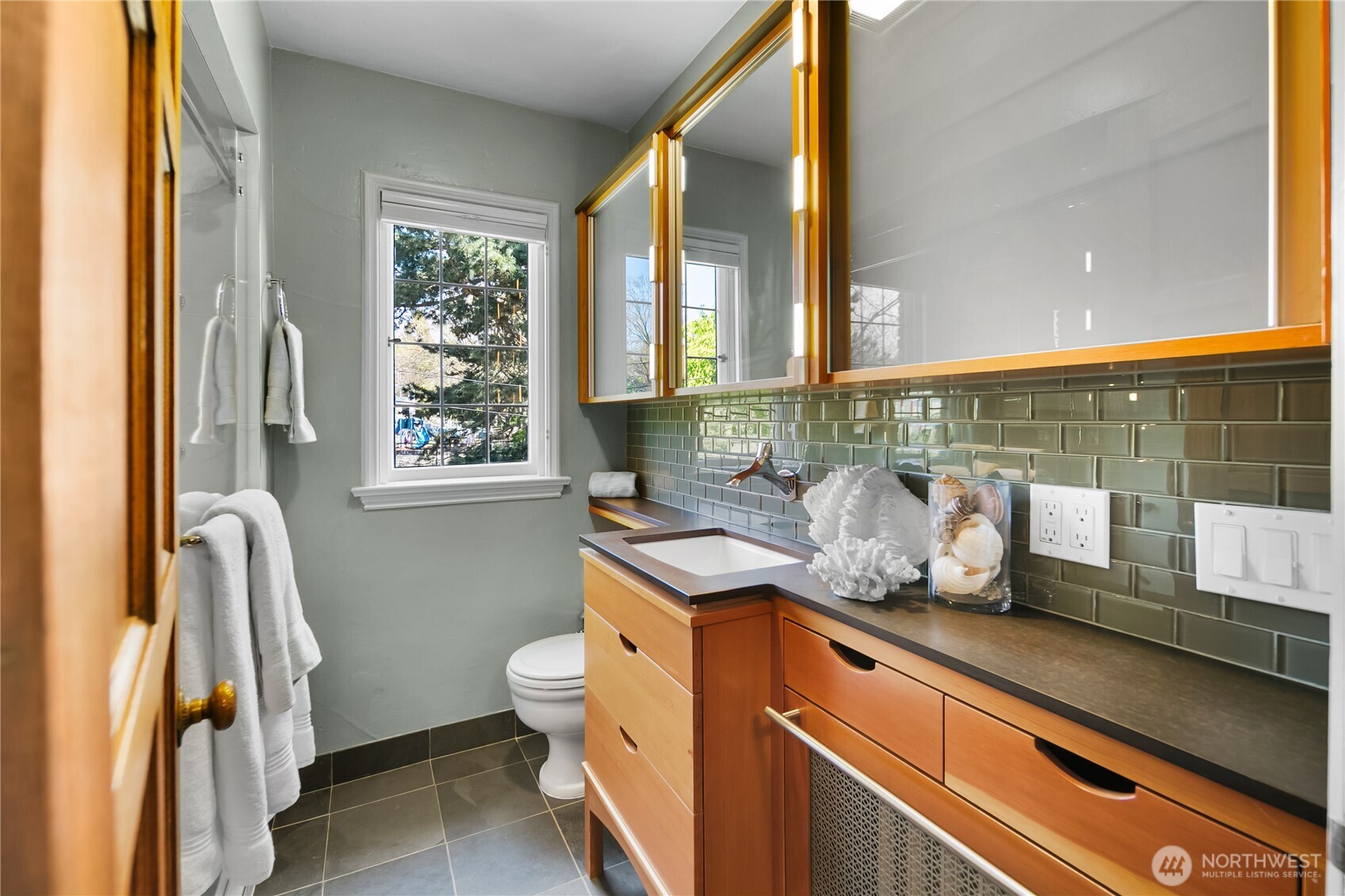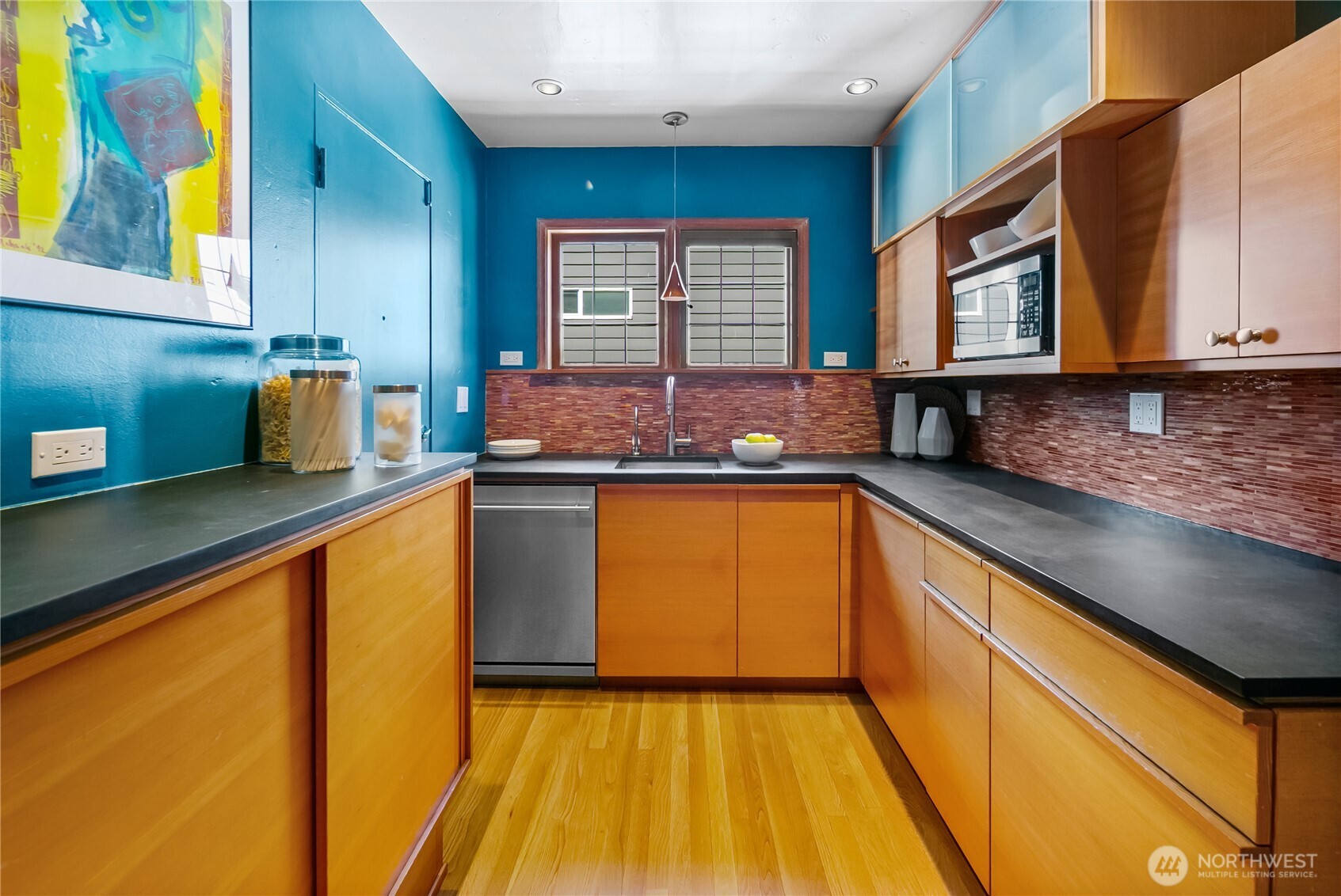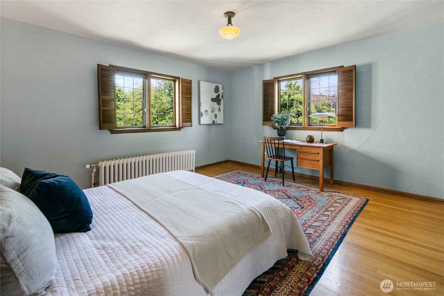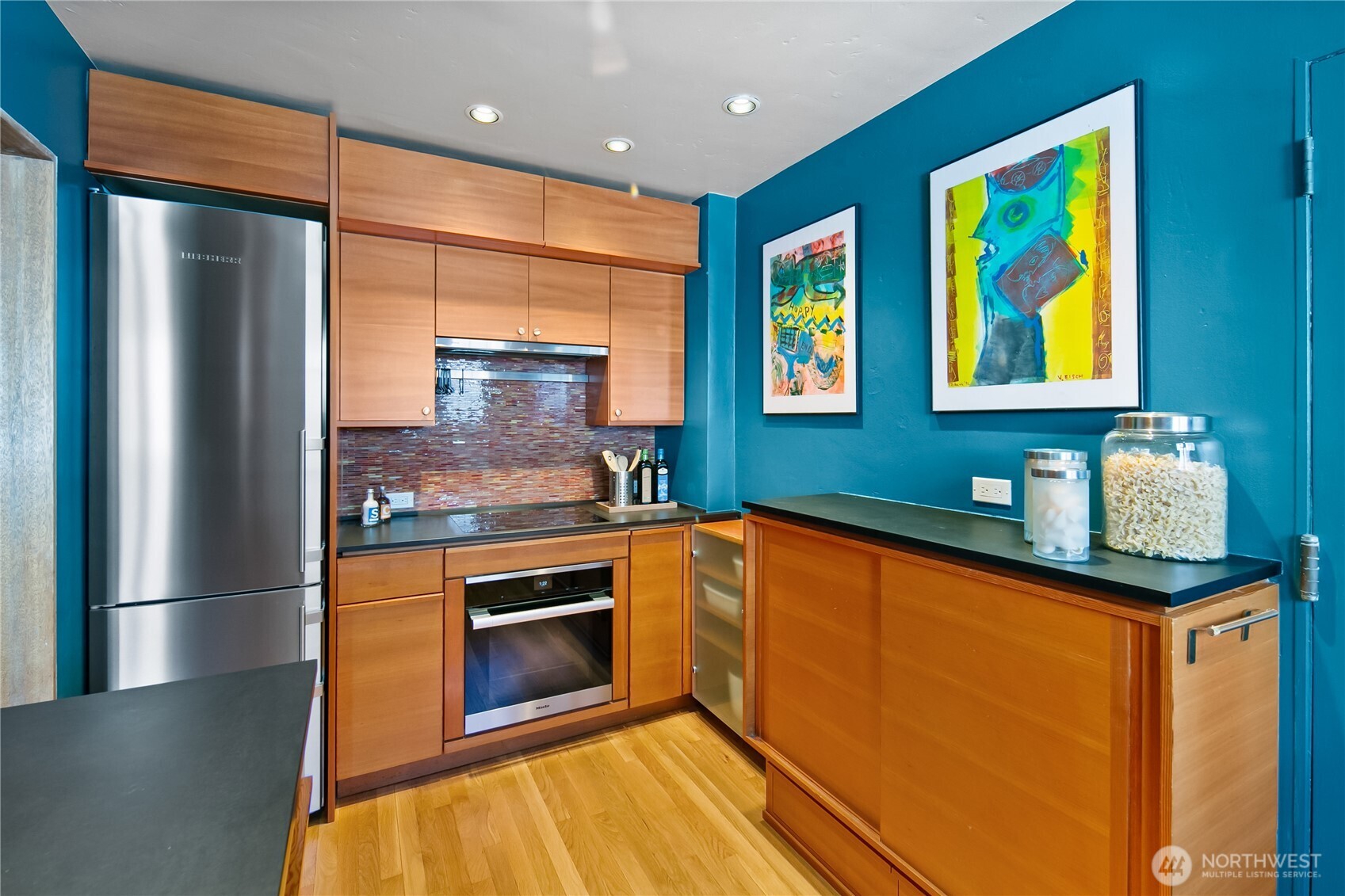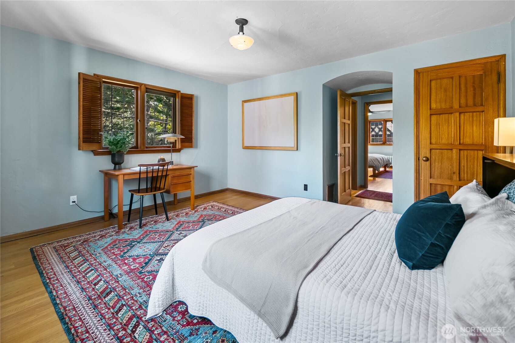 This top floor end unit at the treasured 1014 E. Roy Condominiums by Frederick Anhalt will delight! The home has no shared walls, and features an updated kitchen and bathroom that introduce modernity while honoring the original architecture. Curved archways throughout, including a custom door that separates the living and sleeping areas, continue the romantic flourishes of the exterior design. Thoughtful improvements include restored windows and retractable screens in operable windows. Convenient Capitol Hill location w/ proximity to peaceful Volunteer Park and the vibrant energy of Broadway. Dedicated washer/dryer just outside the kitchen door. Parking is available to rent across the street at the Anhalt-designed 1005 E. Roy Apartments.