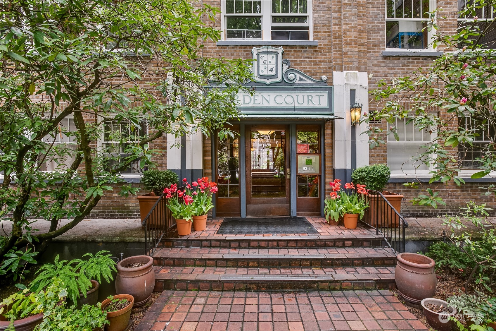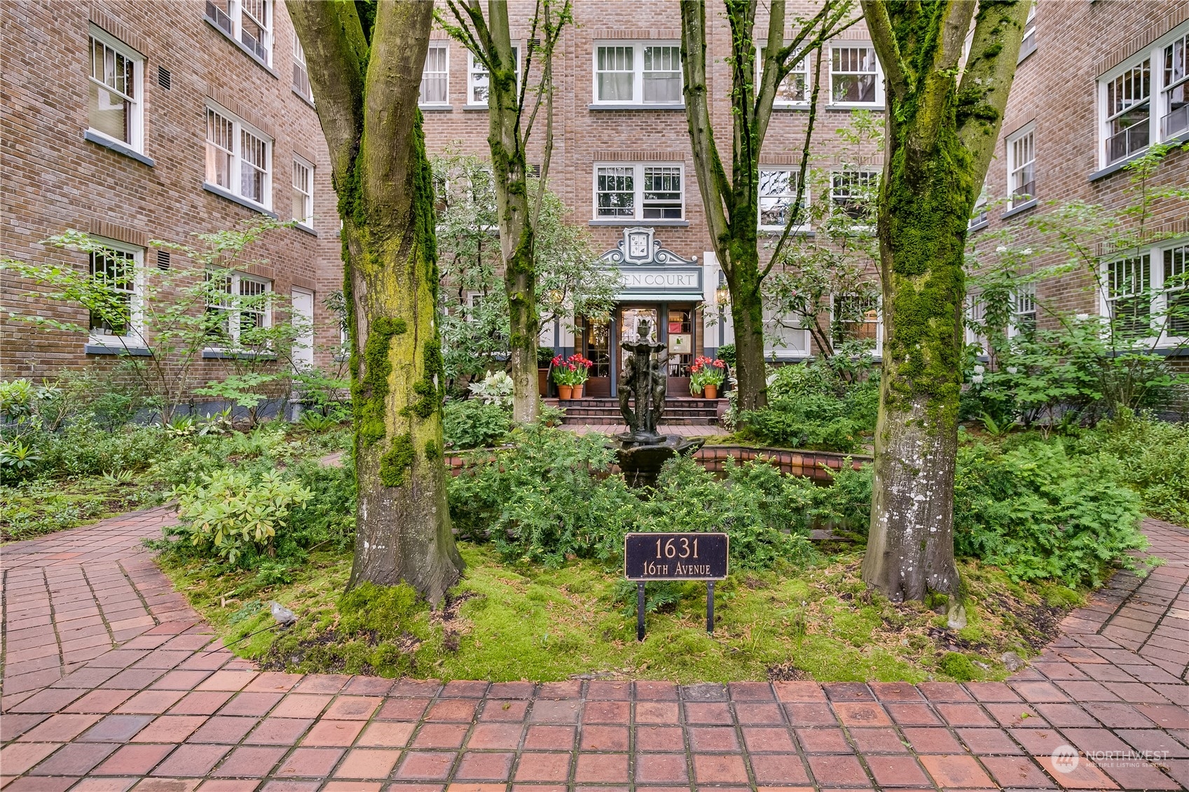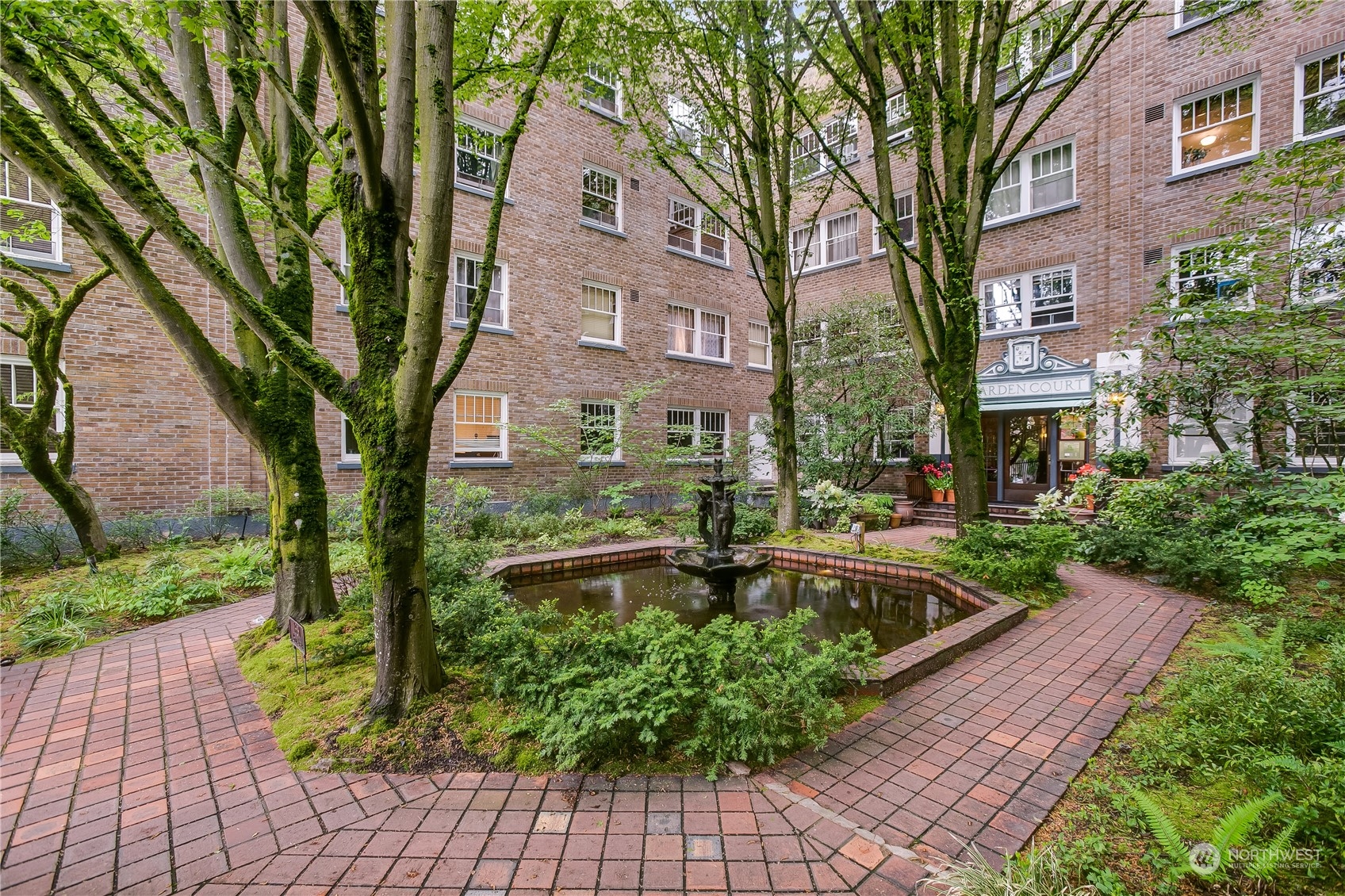 Enjoy city living in the heart of Capitol Hill at historic Garden Court. This spacious unit looks out over the grand courtyard, enveloping you amongst green trees and the sound of the serene fountain. Original hardwood floors, coved ceilings and vintage charm abound. Amazing storage space in unit includes ample built-ins in the bathroom and four closets. One big enough to double as an office! Kitchen has updated countertops and stainless steel appliances (including a dishwasher). Vast backyard includes a hammock, picnic table, outdoor seating and potting station for container gardening. Laundry room in basement features bike storage and a community book exchange. Additional storage in basement. Wonderful HOA community.