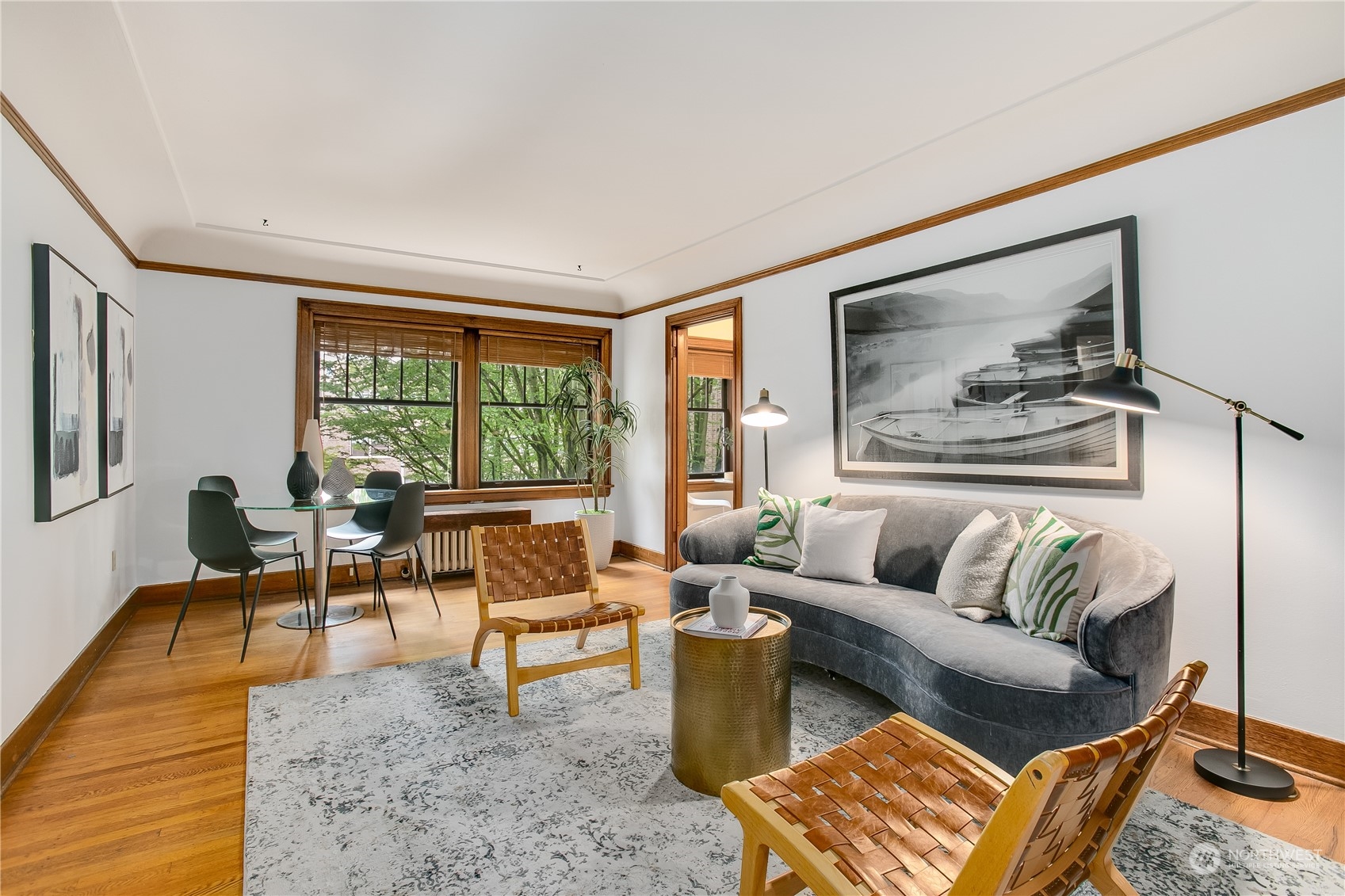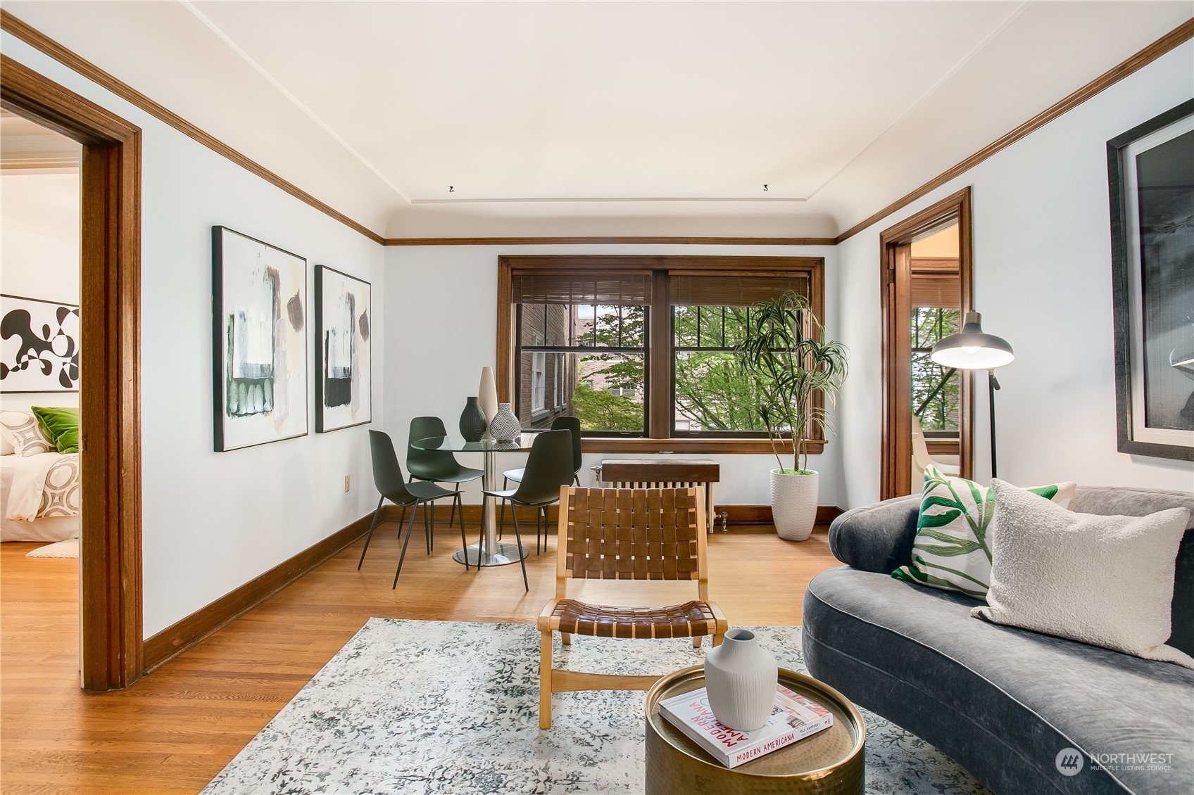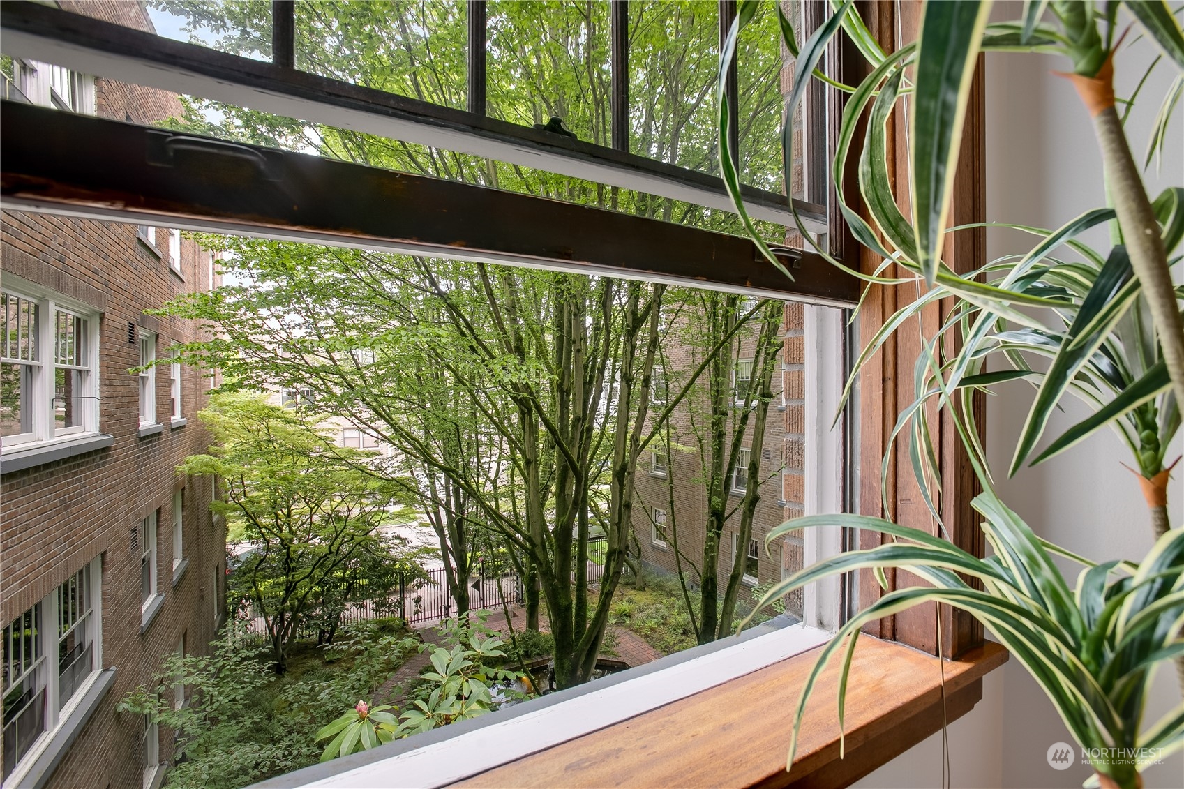 Enjoy city living in the heart of Capitol Hill at historic Garden Court. This spacious unit looks out over the grand courtyard, enveloping you amongst green trees and the sound of the serene fountain. Original hardwood floors, coved ceilings and vintage charm abound. Amazing storage space in unit includes ample built-ins in the bathroom and four closets. One big enough to double as an office! Kitchen has updated countertops and stainless steel appliances (including a dishwasher). Vast backyard includes a hammock, picnic table, outdoor seating and potting station for container gardening. Laundry room in basement features bike storage and a community book exchange. Additional storage in basement. Wonderful HOA community.