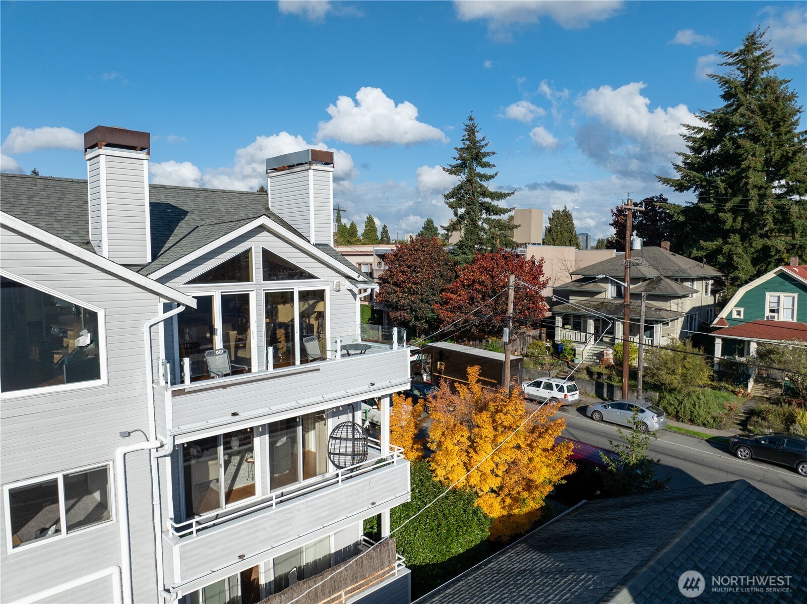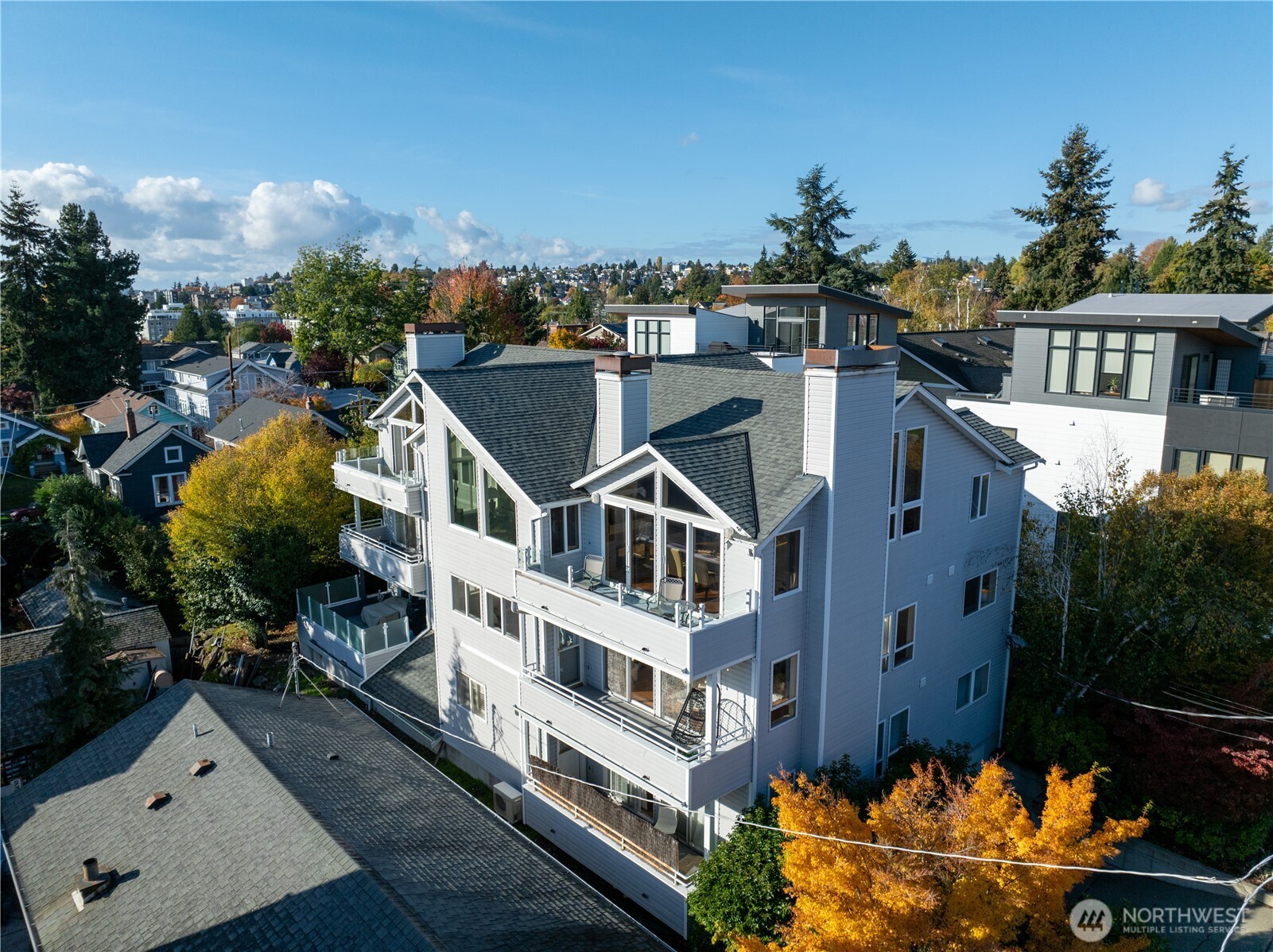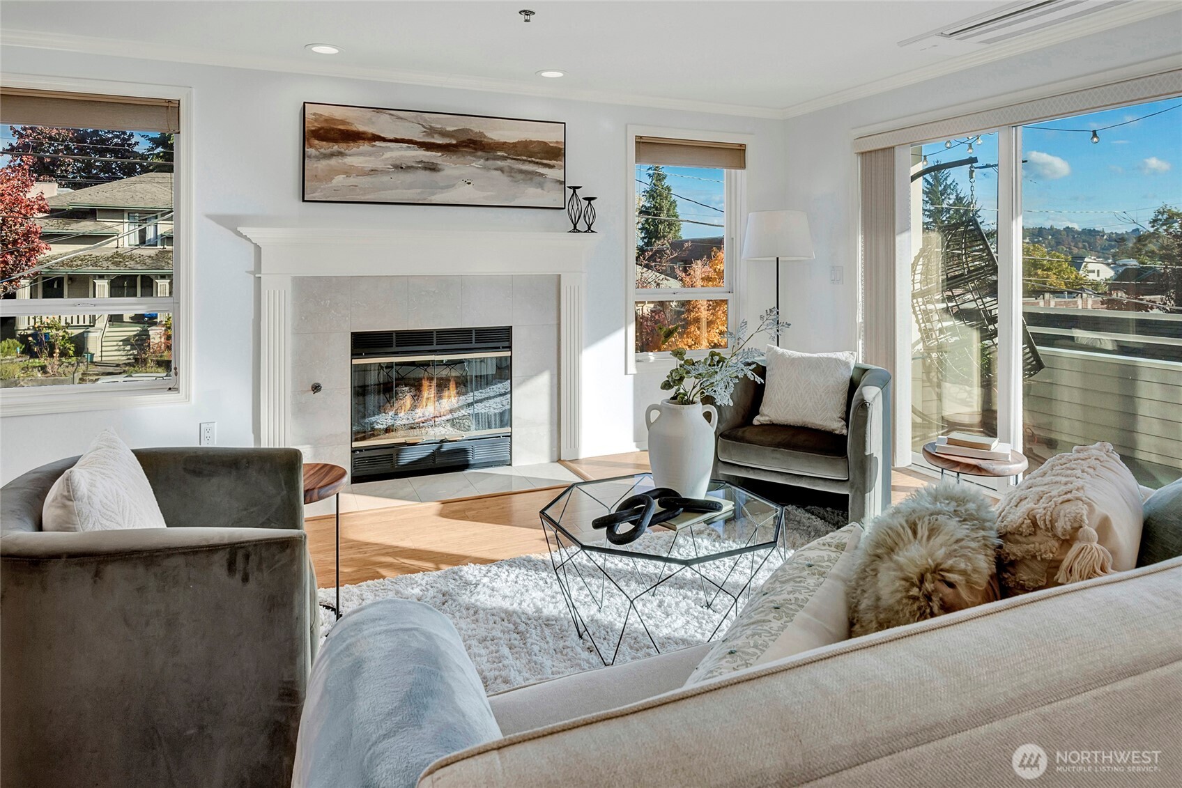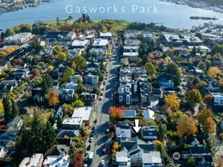 PRICE reduced on this spacious corner unit in a small, boutique, with a well-run HOA offers magical city + Space Needle views from the primary suite, living and dining rooms! Located just blocks from Gas Works Park + Burke-Gilman Trail, this home features a cozy gas fireplace, OPEN great room floorplan....filled with natural light. Enjoy an abundant + private deck, two secured garage spaces, storage, elevator + secure entry. Close to Google, Amazon, Greenlake, fun shopping, dining, downtown Seattle, Lake Union, and UW. Model perfect! Move in ready to love!