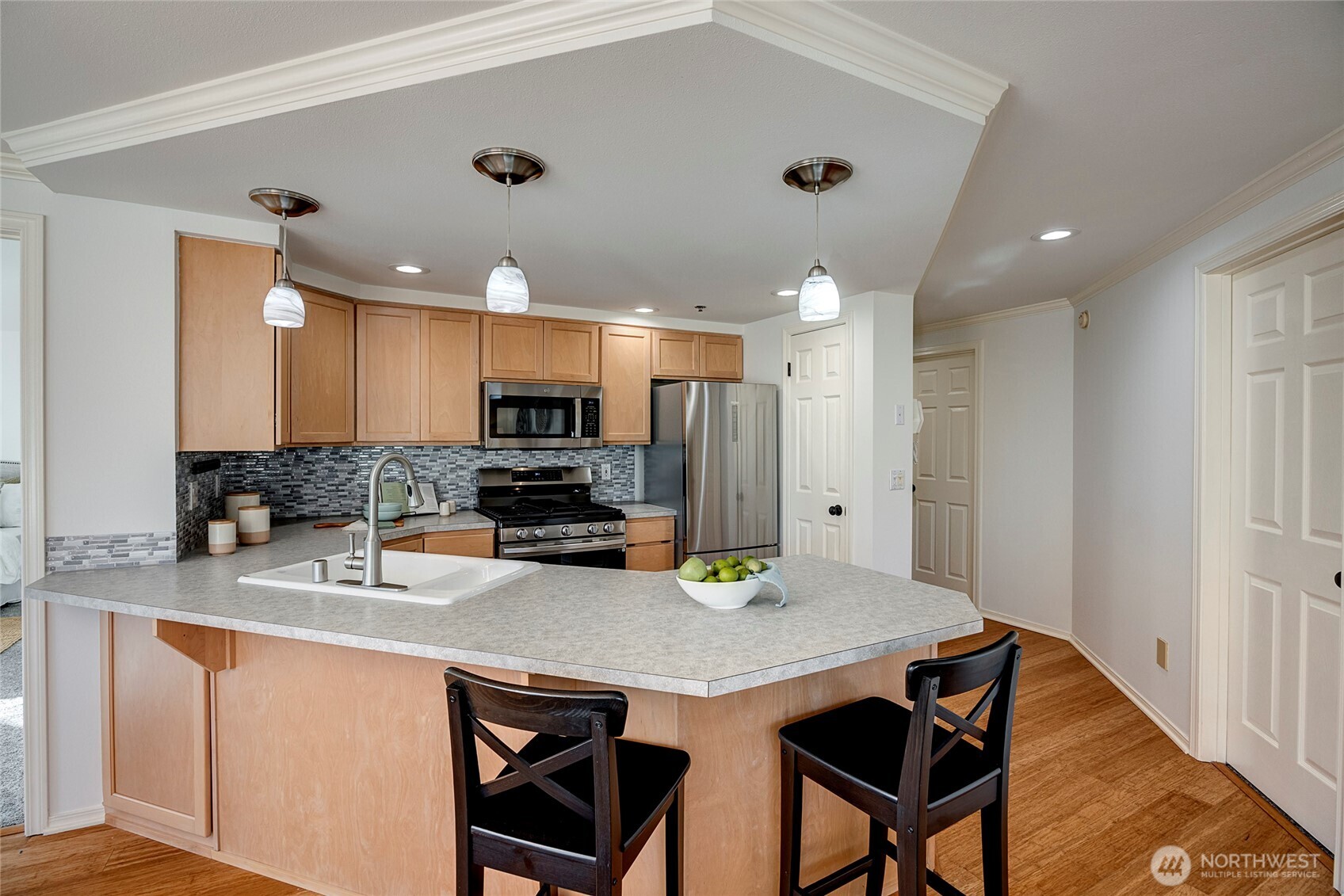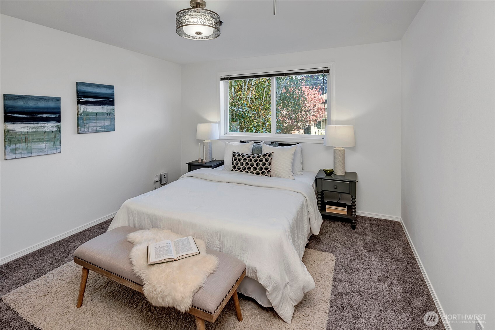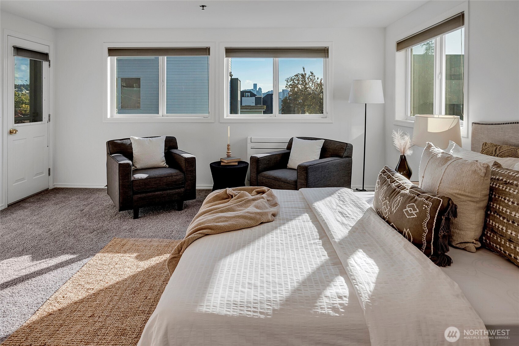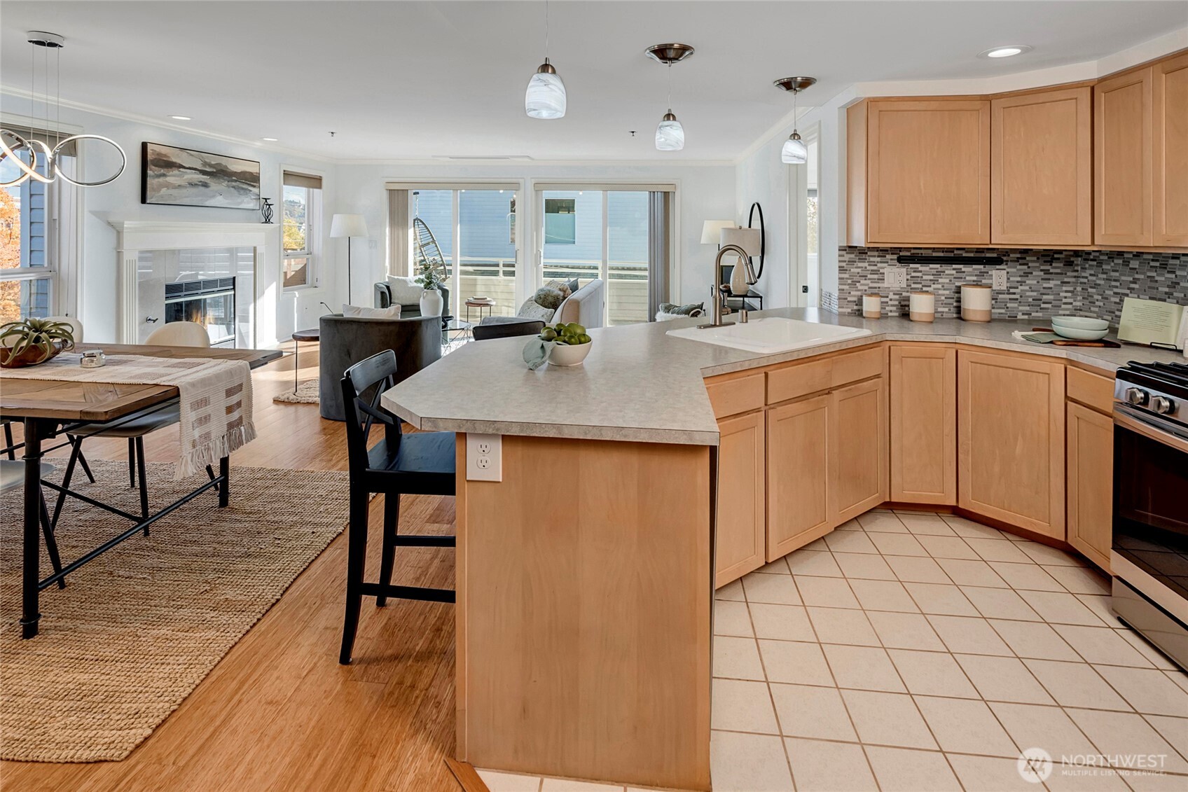 PRICE reduced on this spacious corner unit in a small, boutique, with a well-run HOA offers magical city + Space Needle views from the primary suite, living and dining rooms! Located just blocks from Gas Works Park + Burke-Gilman Trail, this home features a cozy gas fireplace, OPEN great room floorplan....filled with natural light. Enjoy an abundant + private deck, two secured garage spaces, storage, elevator + secure entry. Close to Google, Amazon, Greenlake, fun shopping, dining, downtown Seattle, Lake Union, and UW. Model perfect! Move in ready to love!